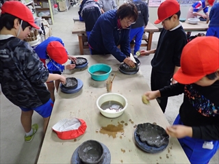 1年生は生活の学習で体験した「むかしからつたわるあそびをたのしもう」の発表会をしました。けん玉,こま回し,福笑いなど,日本の伝統的な遊びについて分かったことを保護者の方々に伝えます。技がきまると大きな拍手でうれしそうでした。